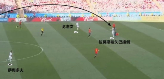 在那场西班牙人完成79%控球,以及1146次传球的“史诗”之战中,俄罗斯人就是用这样一种长传找久巴的方式完成推进。戈洛文及时跟进,形成了很好的呼应。