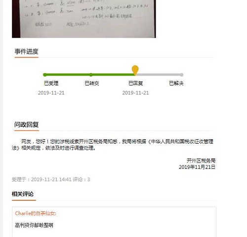开州区税务局答复将根据《中华人民共和国税收征收管理法》相关规定,依法及时进行调查处理。