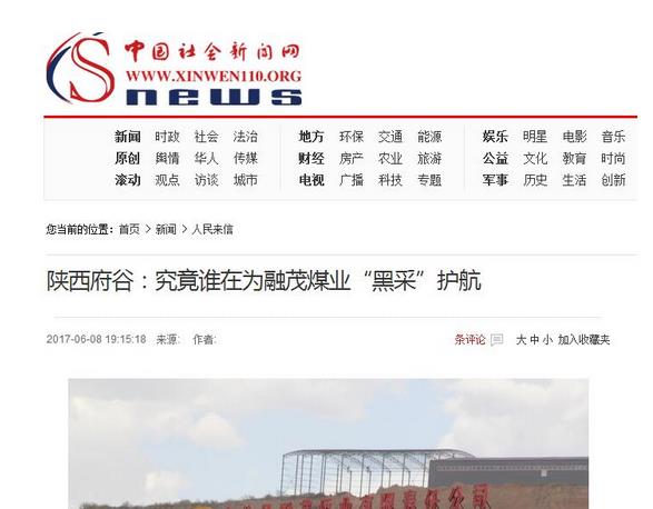 陕西府谷县,老高川镇矿产资源丰富是神府煤田腹地,周边与本县的大昌汗镇、新民镇、三道沟镇、庙沟门镇相临,北与内蒙古准旗羊市塔镇接壤、南与神木县店塔镇一水相连。是国家规划的陕北能源化工基地的重要组成部分,也是陕西省规划的煤电载能工业园区。因此这里成为盗采国家煤炭资源的高发地,也是许多不法分子的垂涎之地。其中位于老高川镇木房沟村青龙寺附近的融茂煤业(洗煤厂),近几年内就以开办洗煤厂名誉,挂羊头卖狗肉私开黑口子非法盗取地下煤炭资源。 记者多次接到,融茂洗煤厂下井的多名四川籍矿工反映,该洗煤厂私开黑洞打通巷道,多年来一直大量非法盗取国家煤炭资源。每日产量2000吨左右,开采5—2煤层,是府谷县名副其实最大的黑口子。