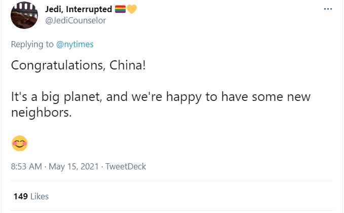 | 原标题:中国成了,国外有人的反应有意思了 5月15日,我国首次火星探测任务天问一号探测器着陆火星,迈出了我国星际探测征程的重要一步。不过,对于这样一个科技领域的重要新闻,某些人的留言又暴露了他们对中国的“小家子气”。 就在发稿前不久,美国航空航天局(NASA)科学助理署长托马斯·泽布臣以个人名义发布推文,祝贺中国天问一号团队成功完成落火任务,他在推文结尾表示,他期待中国航天团队此举能“为促进人类对这颗红色星球的了解做出贡献”。 相比此前用官方号对外国航天成就发布贺电,这次NASA则是转发了托马斯的这条个人推文,作为对世界第三个国家成功登陆火星这一壮举的表态。 ![]() 不过,即便是NASA这一相对低调的祝贺,也刺激到了某些人的“玻璃心”。在托马斯推文评论区的第一条,就是一个美国网民酸溜溜地质问NASA和托马斯:“NASA到底被中国偷了多少技术,才让他们这次把事干成了?” ![]() 更有人揪住托马斯那句“红色星球”的措辞玩“文字狱”称:“这个星球是红色的,不代表它就该被共产主义中国‘玷污’。” ![]() 对于类似这些恶评,有不少中外网友还在热心地给他们补上缺掉的文化课,比如告诉他们苏联在美国登陆前几个月也曾探测过火星,按照他们的逻辑,难道美国抄袭苏联了? 也有人指出,美国早在很多年前就开始制定相关法规,尤其是自贸易战以来,美国已经有非常严密的体系阻止中国获得相关技术和数据。更有网友调侃:“美国得多无能,才能被中国这样‘偷技术’?” ![]() 如果说上面的许多恶评只是某些网民的个人行为,那作为全球著名媒体的《纽约时报》的操作,可以说是“小气”到家了。 就在几个小时前,《纽约时报》报道了中国成功着陆火星的消息,但在转发导语上他们却玩了一个很丢人的文字游戏:“中国的‘祝融’火星车着陆火星,截至目前,全球仅美国NASA对火星表面进行过探测。” ![]() 对航天史有所了解的人,就能看出这个说法的几个“亮点”。 首先,这个导语乍一看会让读者非常疑惑,不是说中国的航天器在火星着陆了吗?为什么又说“美国唯一”呢?其实,那是因为中国的火星车刚刚着陆,探测任务将在未来几天内才正式开展。也就是说,《纽约时报》到了自家“唯一”要被摘掉的倒计时,还要最后狠狠消费这个头衔一把。 其次,苏联也曾于1971年12月在火星上投放“火星3号”探测器,由于探测器着陆后疑似因火星风暴造成失联,为了巩固那个“唯一”,《纽约时报》也就乐得把苏联这次行动排除在外了。 此外,由于这条导语对中美探测分别用了不一样的英语措辞,如果是不熟悉航天科技的人可能会觉得,中国本次着陆的行动和美国此前并不相同,有种“比不上”美国的感觉。 如果在讨论探索无边宇宙、走向星辰大海这样宏大的话题时,某些人的目光还只盯着“蜗角虚名”,把聪明才智全用在自吹自擂上,那可真是把自己活成了这个表情包的样子。 ![]() 值得欣慰的是,还是有相当一部分的美国等多国网友,尤其是一直关注科技领域的人都对中国航天的这次里程碑式的成功表达了祝贺。正如这个网友所说:“这是一个很大的星球,我们非常高兴能迎来一些新邻居。” ![]() ![]() |