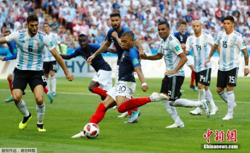 第69分钟,法国上演经典反击,马图伊迪接后卫传球分给吉鲁,吉鲁直传,姆巴佩突入禁区低射破门。15分钟内,法国队连入三球,法国4:2领先阿根廷。