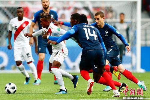 小组赛,法国队仅取得3粒进球,进攻端表现差强人意。中新社记者 富田 摄