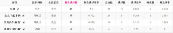 梅罗在世界杯上的制造进球数对比。 而在五大联赛制造进球(进球数+助攻数)的历史榜单上,梅西以531球冠绝古今,C罗以516球紧随其后,相比之下这让格里夫斯和穆勒450粒左右的制造进球数显得黯淡无光了。 在联赛中,梅罗已经把古人的史诗数据踩在了脚下,但在世界杯中,梅罗的数据却显得平淡无奇了。