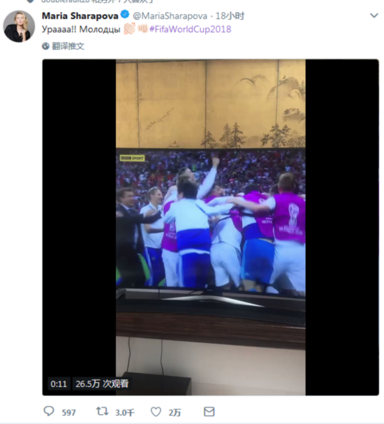 莎娃和维斯妮娜都观看了这场比赛,俄罗斯晋级八强后,两人都非常激动。