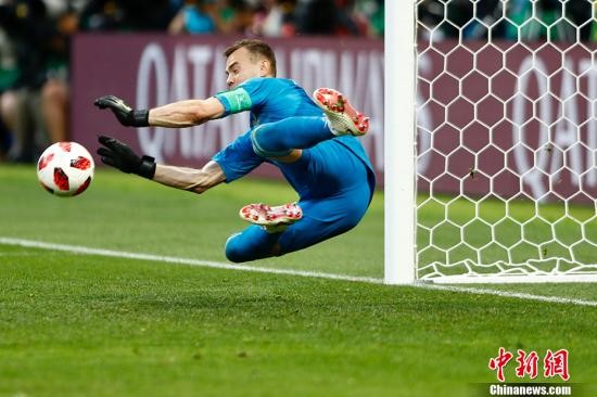 中新社记者 富田 摄"> 俄罗斯门将阿金费耶夫 中新社记者 富田 摄 门将又是“弱旅”以下克上的基石,他们的名字常与爆冷联系在一起。已经回家的夺冠热门德国与西班牙,或许他们自身确有尚未解决的问题,但在被淘汰的诸多原因中,不能忽视对手门将无懈可击的表现。 如阿金费耶夫,这位俄罗斯国门虽成名已久,但职业生涯始终未能更进一步。终于在这届于本土举办的世界杯上,年过三旬的阿金费耶夫一战收复失地。面对强大的西班牙,他先是120分钟内力保城门不失,又在点球大战中拒绝了科克和阿斯帕斯的射门,托着东道主闯入8强。阿金费耶夫用神奇的表现向前辈雅辛致敬,授予世界杯最佳门将的“雅辛奖”正是为了纪念这位传奇门将。在雅辛的故乡,阿金费耶夫成为了新的英雄。