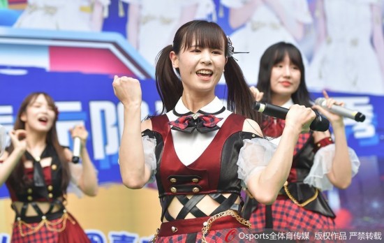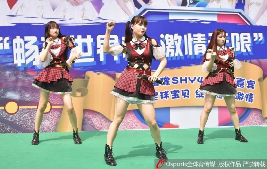 2018年7月4日,辽宁沈阳,SHY48女团化身足球宝贝为世界杯赛事热舞大秀青春活力。