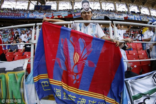 一颗红心两手抓!看世界杯也不忘支持俱乐部主队。 |