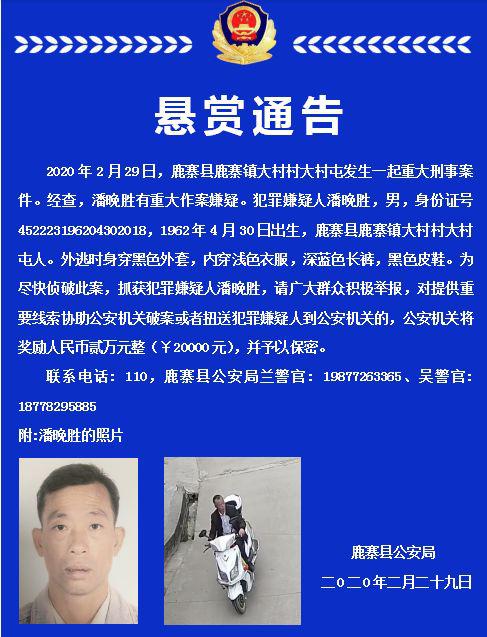 鹿寨警方发布一则悬赏通告,