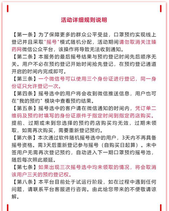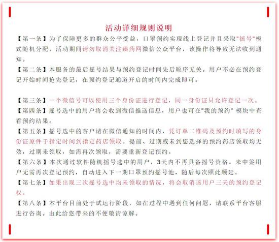 好消息! 桂林、防城港、贵港、来宾开启 线上预约线下免费领取口罩方式 柳州也将投放60万只口罩,0.9元/个 赶紧去预约! 桂林 2月29日,桂林市新冠肺炎疫情防控工作领导小组指挥部发布公告,将于2020年3月1日14:00起至3月5日17:00止,面向桂林市象山区、秀峰区、叠彩区、七星区、雁山区居民限量免费供应9万个民用口罩,其中摇号发放6.1万个。预约成功的市民,每人可免费领口罩4个。以下是公告全文: 为进一步贯彻落实自治区及市委、市政府疫情防控决策部署,坚决打赢疫情防控阻击战,缓解群众买口罩难的问题,经桂林市新型冠状病毒肺炎疫情防控工作领导小组指挥部研究,现决定面向象山区、秀峰区、叠彩区、七星区、雁山区居民限量免费供应9万个民用口罩(产地:越南),其中摇号发放6.1万个(象山区、秀峰区、叠彩区、七星区各1.4万、雁山区0.5万个),由城区直接发放给老弱病残、孤寡、低保等特殊群体2.9万个(象山区、秀峰区、叠彩区、七星区各0.6万个、雁山区0.5万个)。为做好6.1万个民用口罩限量免费供应工作,现将相关事项公告如下: 一、时间及方式 2020年3月1日14:00起至3月5日17:00止,通过 “爱广西”APP平台网上实名预约登记。3月2日至5日每天17:00后系统进行随机摇号,预约成功会收到短信提醒,未预约成功将自动进入下一轮随机摇号。预约成功的居民根据短信提醒到预约门店凭身份证原件领取免费口罩4个。领取时间为领取日的9:00至18:00,具体以短信提醒为准,过期作废。 (一) 口罩预约流程 1、用户下载“爱广西”APP,完成注册并登陆。 2、在首页找到“桂林口罩预约”,填写提交预约区域及预约人信息。 3、提交后在弹窗确认所选的药店是否无误,等待页面出现已登记的提示即可。 4、 摇号预约成功后,第二日前往预约的领取点领取口罩时,请主动向店员出示相关信息及身份证原件,核验无误后即可免费领取。 (二)居民预约规则 1.在菜单中选择您方便的就近领取点进行登记。 2.输入姓名、手机号码、验证码、身份证号码。 3.将于3月2日至5日起每天17:00后进行系统随机摇号。 4.通过系统随机摇号,获得免费领取资格的用户将会收到短信通知及站内信息通知,也可登录APP查看预约信息。 5.请按通知的时间,凭身份证原件到预约点领取,提前、过期或未到您选择的预约领取点领取均无效。 6.完成登记的预约信息中显示“已登记”,摇号成功具备免费领取口罩条件的,预约信息中显示“预约成功”。 二、摇号数量 本次口罩按照第1天1.5万个、第2天1.5万个、第3天1.5万个、第4天1.6万个,共计6.1万个的数量进行摇号(当日未被领取的口罩,将累积到第4天摇号)。 三、领取地点及要求 预约成功的居民需按时凭身份证原件,到象山区、秀峰区、叠彩区、七星区、雁山区的药店门店(具体店名、店址以APP内显示的为准)领取,每人限领4个,并请严格遵守口罩领取点的相关注意事项。 四、注意事项 (一)请大家做好自身防护措施,佩戴口罩,有序到领取点错峰领取,防止交叉感染。 (二)本次投放口罩为免费提供,任何以申领口罩为由收取费用的行为均属诈骗,请居民提高警惕。 (三)由于物资紧缺,投放数量不足,市委、市政府正在积极拓宽采购渠道,今后,将不定期通过定点药店投放,投放信息以公告为准。 (四)本次活动主要面向桂林市五城区城乡居民,请各行政机关、事业单位、社会团体、国有企业等相关人员不要参与。 (五)临桂区、恭城县由自治区新冠肺炎疫情防控指挥部定向提供。我市安排龙胜县、资源县各1万,全州县3万,其它县(市)各2万口罩进行免费发放,具体发放时间及方式由各县(市)新冠肺炎疫情防控指挥部结合实际,参照本公告尽快实施。 请广大群众积极配合我市疫情防控工作,加强自我防护意识,做到不造谣、不信谣、不传谣,不聚会、少出门、不串门,居家保护,共同打赢新型冠状病毒肺炎疫情防控阻击战。 消费者监督电话:0773-12315 关于桂林市民领取免费口罩的疑问, 解答在这里! 0 1 问:为什么还找不到“桂林口罩预约”通道? 需要预约免费口罩的市民,3月1日14点后可通过应用商店搜索下载“爱广西”APP,完成注册并登陆。 ![]() ↓↓↓ ![]() 同时提醒大家:从3月1日14:00到3月5日17:00,每个人只有一次预约机会,在此期间预约的摇中几率是相同的!请大家错开高峰期避免造成网络拥堵。 本次口罩按照第1天1.5万个、第2天1.5万个、第3天1.5万个、第4天1.6万个,共计6.1万个的数量进行摇号(当日未被领取的口罩,将累积到第4天摇号)。 0 2 问:摇号预约成功,在哪里可以领取? 桂林市五城区(象山区、秀峰区、叠彩区、七星区、雁山区)共有70家药店发放免费口罩,预约时可选择就近药店。具体以短信通知为准。下面附上药店名单地址(点击可放大图片): 叠彩区 ![]() 七星区 ![]() 象山区 ![]() 秀峰区 ![]() 雁山区 ![]() 0 3 问:摇号预约成功,是否可以代领? 摇号预约成功后,第二日前往预约的领取点领取口罩时,请主动向店员出示相关信息及身份证原件,核验无误后即可免费领取。可以凭摇号者相关信息、身份证原件代领。 0 4 问:为什么这次摇号预约没有临桂区?其它县(市)居民是否有免费口罩发放? 其他各县(市)都会参照安排免费发放。 这次摇号预约面向象山区、秀峰区、叠彩区、七星区、雁山区居民,临桂区不在此次摇号预约范围内。临桂区、恭城县由自治区新冠肺炎疫情防控指挥