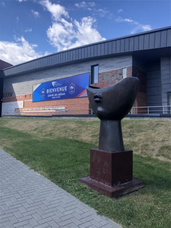 德国的啤酒 另外,德国队之前也有一家快餐的咖啡副牌赞助商,在德国驻地你永远不会担心饿肚子,因为总有免费的咖啡和甜品,以至于每次比赛结束的发布会上,领队比埃尔霍夫都会给大家细数整个赛事媒体吃了多少块芝士蛋糕。但是这次,这家免费的咖啡厅也不复存在,取而代之的是球队酒店自己提供的咖啡和甜品,而且都是收费的。只有各种可乐雪碧苏打水和饮用水还是免费给媒体提供,而且还有一家啤酒赞助商品牌还屹立不倒。想要喝啤酒,德国人还是绝对无限量供应。 但是从这些细节来看,德国这一次世界杯真的是还没有准备好。 法国驻地:藏于博物馆的新闻中心 法国队这次的驻地位于距离莫斯科西北70公里的一个叫做伊斯特拉的地方。沿着M9号高速一路向西北,见到伊斯特拉的标识驶出高速就能看到一条林间小路。法国队所在地区最有名的就是新耶路撒冷修道院,这座修道院的建成被看作是整个俄罗斯历史的转折点,每天都有人络绎不绝的来这里朝圣。而法国队的酒店就在修道院附近,他们更是把新闻中心直接放在了新耶路撒冷博物馆里,新闻发布厅甚至用的博物馆里的大舞台。