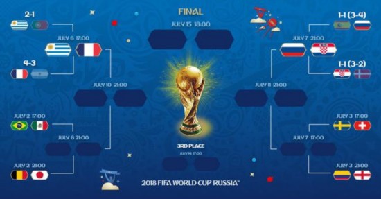 目前的世界杯淘汰赛签表 所以到目前为止,下半区变成了什么样子?俄罗斯和克罗地亚之中会有一个四强,整个半区只有两个队进过世界杯决赛,分别是英格兰和瑞典,最近的一次也远在52年前了。如果大英和瑞典没能冲出半区,就意味着世界杯又将诞生一支首次闯入决赛的球队。这可是个稀奇事,上次世界杯出现决赛新军还是2010年的西班牙,再往前是1998年的法国,再前竟然要到1974年的荷兰了。这几支球队的实力在当时足坛的排位,无疑比这届的潜在决赛新面孔在如今足坛的座次要高多了。半决赛一向是世界杯抵御冷门的最后阵地,但今年的情况似乎不太一样了。