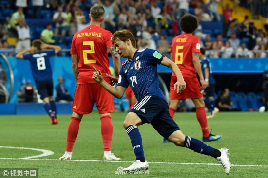 北京时间7月3日,世界杯1/8决赛,日本vs比利时,比赛第52分钟,乾贵士禁区外远射破门。